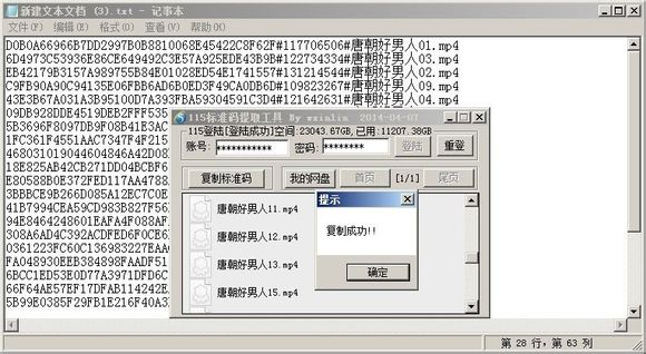 1、打开115标准码提取工具,登录115网盘账号,自动读取网盘内所有资源内容
