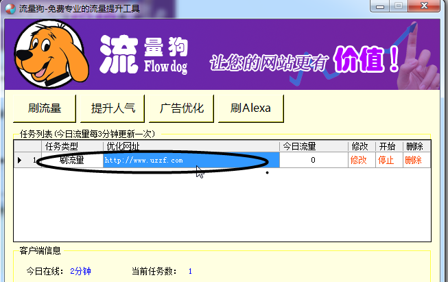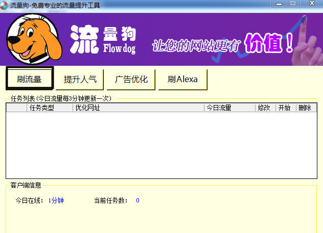流量狗是款操作起来十分方便的网站提升流量工具,大家不需要很多复杂的设置,就可以通过网站IP、PV量、排名等等进行查看流量变化,想要的都可以进行下载!