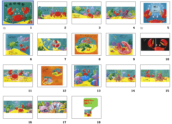 “螃蟹尼尼不喜欢自己那对大钳子。不管他干什么,笨拙的大钳子总是碍事儿。”