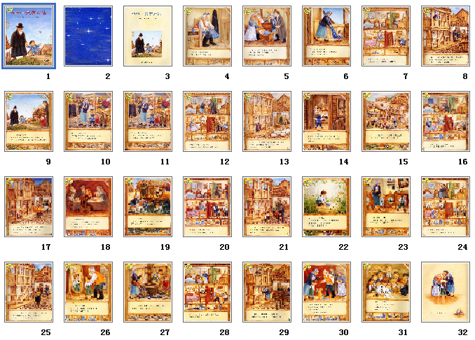 约瑟还是长大,手帕还是变小变旧。照样的,妈妈还是没有能把手帕丢掉,结果,有办法的爷爷用这块材料……为约瑟做出了一颗纽扣。一颗小小的奇妙的纽扣装在他的吊带上。蓝颜色的!