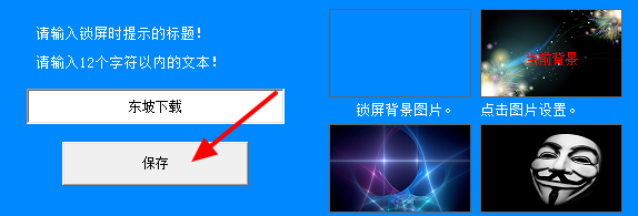 2、选择锁屏背景和锁屏文本,点击【保存】(锁屏背景图片可自行更换,复制图片到Dota目录即可)