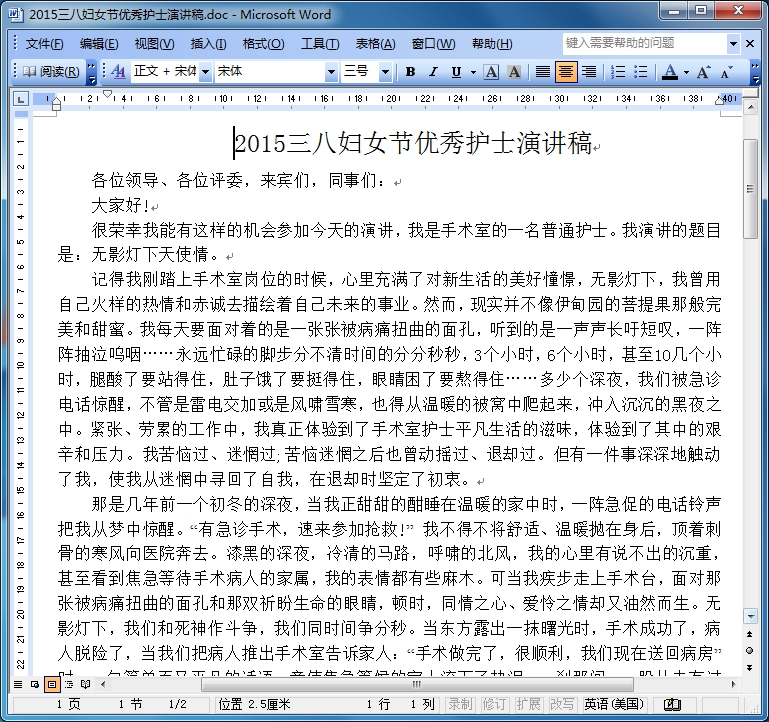 3月8日国际妇女节是全世界妇女的节日,也被很多国家确定为法定假日,下面分享的是2015三八妇女节优秀护士演讲稿,小编整理了2篇关于三八妇女节护士的演讲稿,有需要的朋友可以点击下面的地址免费下载。