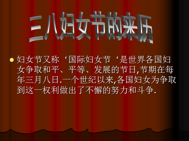 今天小编和大家分享的是一个妇女节ppt模板,具体为2015年三八妇女节母亲节主题班会ppt模板,希望这个感恩主题班会ppt模板大家会喜欢,简约大气风格,ppt格式,有需要的朋友可立即下载这个母亲节ppt模板。