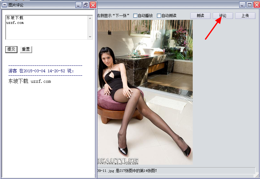 5、本软件启动后,点击“评论”按钮,打开正在显示的图片的评论页面,您可以,对当前图片进行评论。