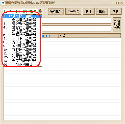 迅雷会员账号获取器2015是最新、最好用的迅雷会员账号获取工具。软件内置十多个迅雷会员账号获取点,支持超强万能正则采集,可以采集所有网站,就算要获取的网站改版,只要简单改一下采集的网址和正则,就可以正常获取,再也不怕软件过期。同时有一个爱奇艺账号获取点,欢迎下载体验!