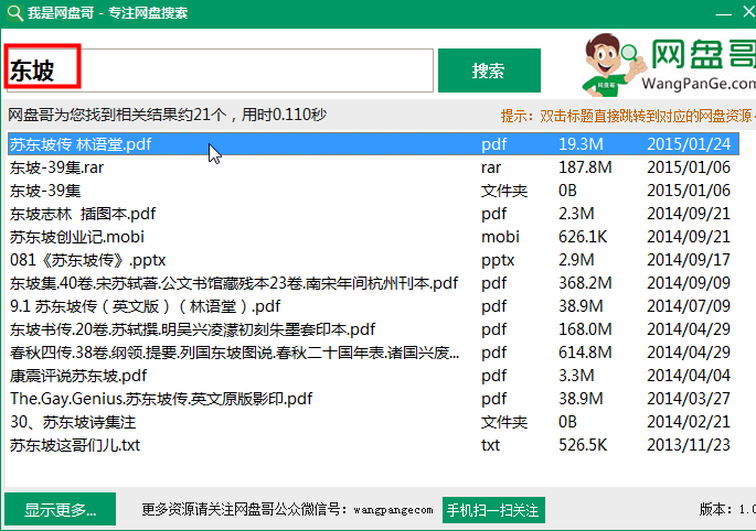 这年头但凡有点本事的都自称为哥,就像是今天介绍我是网盘哥,它就是款功能相当强大的云盘资源搜索器,不管是多难找的资源,在它这里就不存在找不到的可能,而且他操作界面,非常适合需要的朋友来此下载!