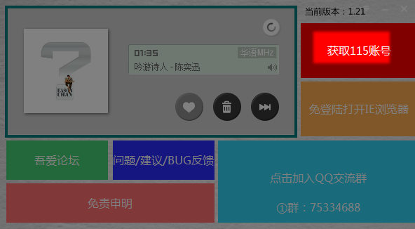 115网盘VIP帐号获取器其实就是款非常好用的115VIP账号的工具,大家不需要很多的操作,就能快速获得115网盘VIP账号,从而可以实现高速下载,还有很多特权,想要的就赶紧来这里下载!