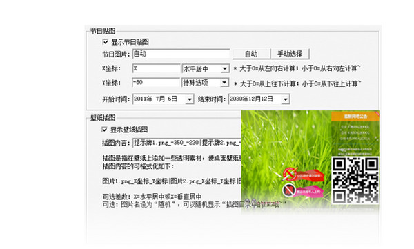 七艺桌面的贴图插图功能可以让你在桌面任意位置进行插图,常见插图有图片、二维码等。同时具有节日自动贴图的功能,非常强大。
