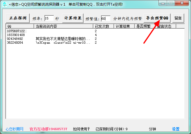 3、输出探测结果,可以自行导出频繁QQ