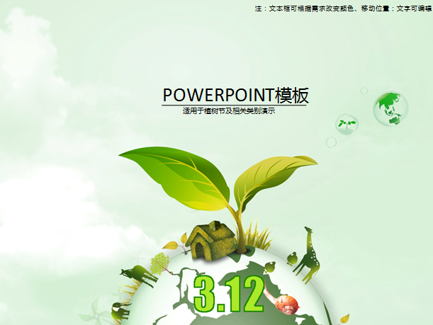 距离植树节还有一天的时间,估计很多朋友都在写312植树节活动方案,也正在寻找一些植树节ppt背景素材呢,那么今天小编给大家带来的正是关于312植树节活动方案ppt模板,绿色地球风格,一共分为ppt和pptx格式,希望这个植树节ppt模板大家会喜欢,有需要的朋友可立即下载此文档。