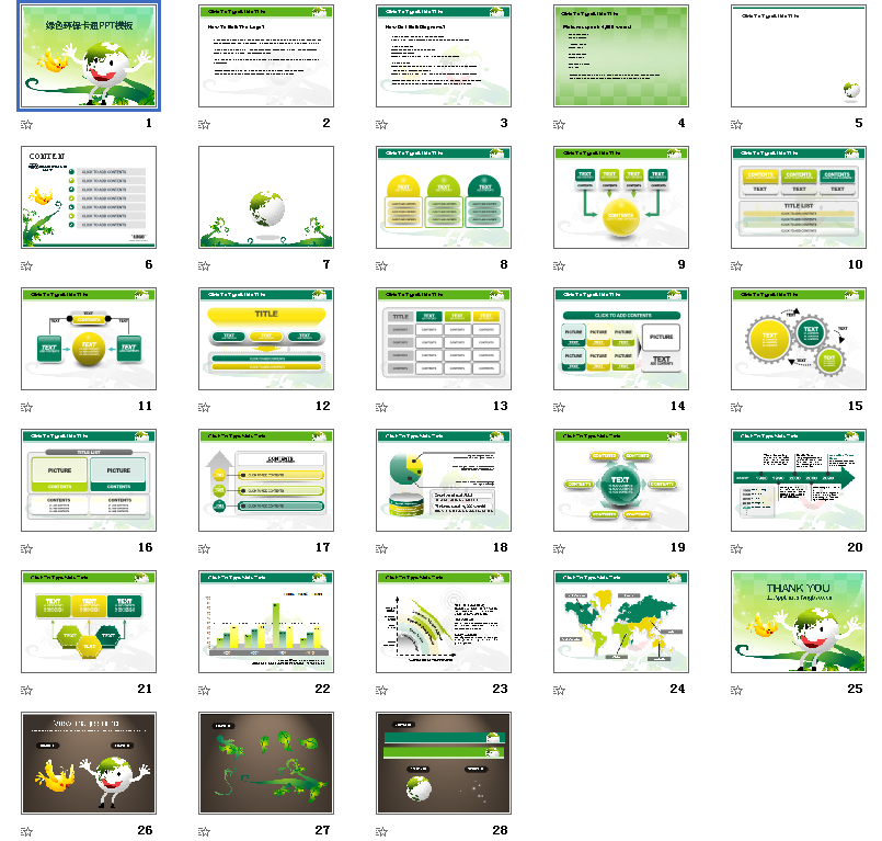 随着人口的增长工业的发展,也会伴随着生态环境的污染,保护自然、保护环境也是大家共同的责任,下面分享的是绿色环保卡通ppt模板,ppt幻灯片以一个卡通的地球拥抱小鸟为背景,有需要的朋友可以免费下载这份绿色环保ppt模板直接使用。