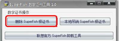 SuperFish 数字证书工具就是专门针对联想superfish数字证书的进行卸载的软件。通过他就能一键让大家的电脑可以彻底的吊销的Superfish的根证书,非常的好用,想要的都可以来此进行下载!