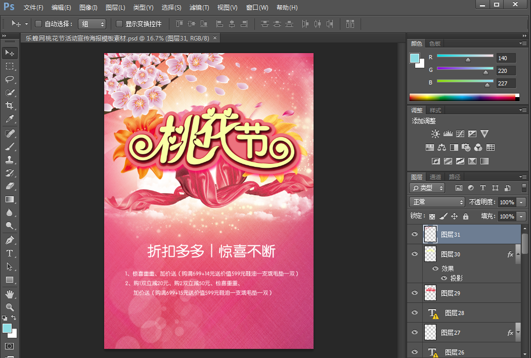 随着温度的慢慢回升,很多树木开始发芽,春天可是有很漂亮的桃花哦,想必很多人也听说过桃花节,很多商家也是借桃花节来设计促销海报模板,而今天小编给大家带来的是乐蜂网桃花节活动宣传海报模板素材,psd分层高清版,希望这个桃花节psd大家会喜欢,有需要的朋友可立即下载。