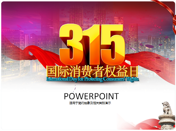每年的3月15日是国际消费者权益日,也是各地开展的一次大规模的打假活动,目的就是要保护消费者的权利,因为有很多也在找一些消费者权益日ppt模板来制作宣传资料。今天小编给大家分享的是一个315ppt模板,具体为315保护消费者权益日活动宣传ppt模板,红色大气风格,一共分为ppt和pptx两种格式,希望这个维护消费者权益ppt大家会喜欢,有需要的可立即下载此文档。
