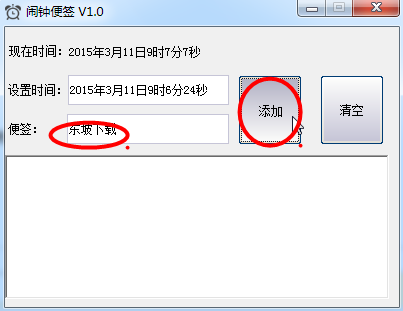 打开软件后修改时间,并且添写一个便签后,点击添加。