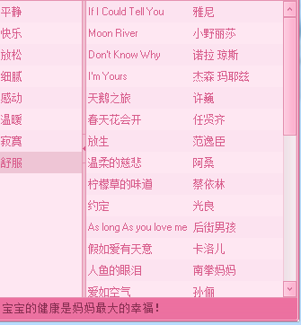 胎教音乐大全播放器是孕妇在怀孕时期为宝宝听的音乐,有着各种适合肚子宝宝听得胎教音乐。从怀孕一月都十月都有明显分类。欢迎下载使用。