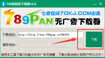 1、打开软件,把789盘网页地址复制到软件中,并点击下载按钮