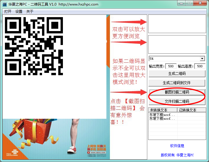 华夏之海二维码工具是一款电脑版的二维码软件。软件集二维码生成、扫描等功能于一体,可一键制作生成二维码;无需摄像头,轻轻松松扫描网页上的二维码。绝对是最全能的PC版二维码工具。欢迎下载体验!