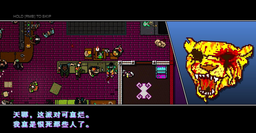 《迈阿密热线2:空号》获外媒IGN评分高达8.8分(满分10分),超越了很多单机游戏大作。游戏以其独特游戏内容、丰富的剧情、紧凑的游戏节奏,带领玩家真正体验游戏的快感!游戏,就该这么玩儿!迈阿密热线2空号汉化补丁由3DM制作,完美汉化游戏内容,带给你最棒的汉化体验!