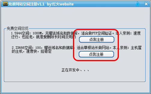 免费网站空间注册是一款专门用于注册网站免费空间的小工具。该软件可以很方便的注册5944和ID666免费空间,后续将持续更新,将会支持更多的免费网站空间。欢迎下载使用!