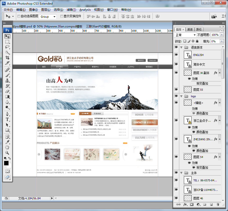 一个公司的网站就是展示公司整体形象的窗口,纺织公司的网站还是要简洁大气一点,下面小编带来的是纺织公司网站psd模板,一个人站在雪山高峰上面,山高人为峰,象征着企业的精神。