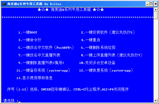 2.用电脑打开本工具箱,键盘输入1-13任一序号