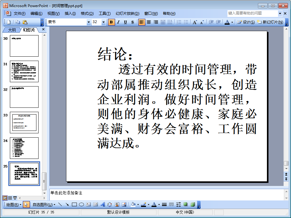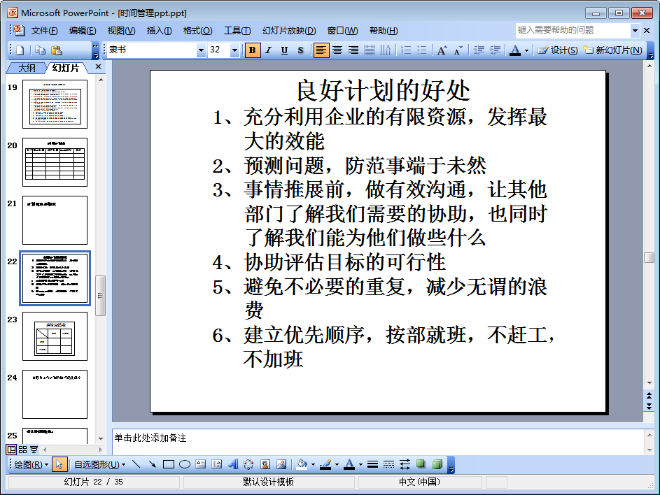 这是一份主题为“时间管理”的ppt文档资料,适合讲师使用,ppt从时间管理的涵义、时间的观念、时间效益观念等方面详细讲解了时间管理相关知识,如果你需要一份这样的“时间管理”ppt文档作为参考的话,点击本文下方相应的下载地址进行下载即可查阅该时间管理ppt,欢迎下载使用!