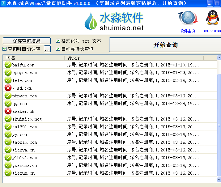 水淼域名Whois记录查询助手就是专门用来查询域名Whois的强大工具,它最大的特点就是可以批量的对域名Whois进行查询,从而最快的知道域名是否已经被注册的信息,感兴趣的都可以来到这里进行下载!
