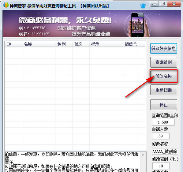 本软件只为方便大家找出被删好友,修改名称,方便通过手机找出并删除。