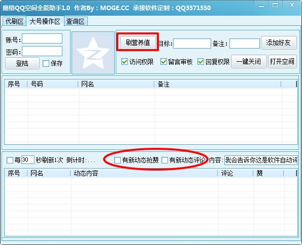 魔格QQ空间全能助手是一款2015最新、免费的QQ空间全能营销软件,堪称全能之王。其全能之处,甚至于兼顾到了花藤、礼物等方面,没有你想不到,只有你用不到。最重要的是软件永久免费,心动了吗?赶紧来下载使用吧!
