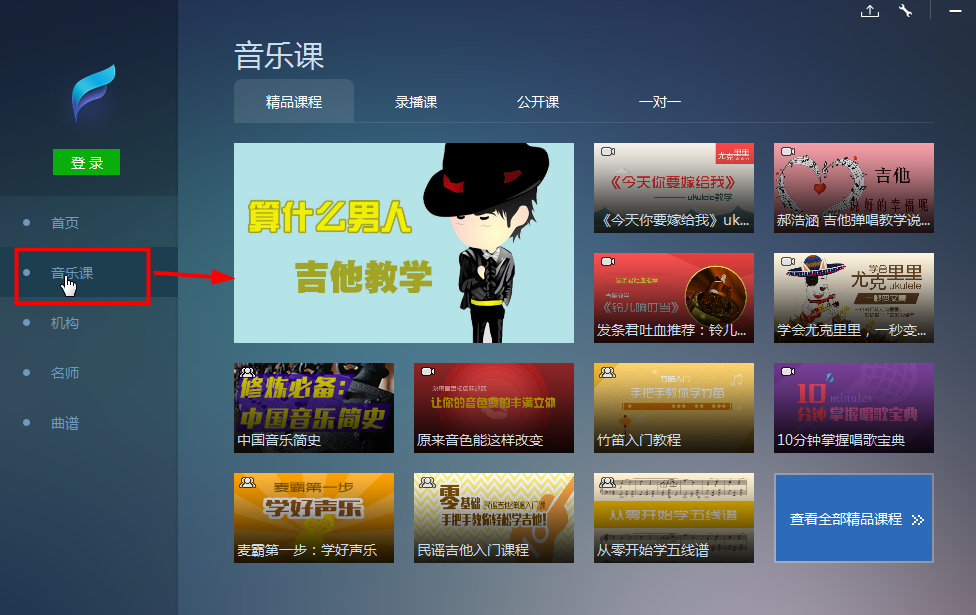 2、还是可以选择“音乐课”在这里找最好看的音乐课程