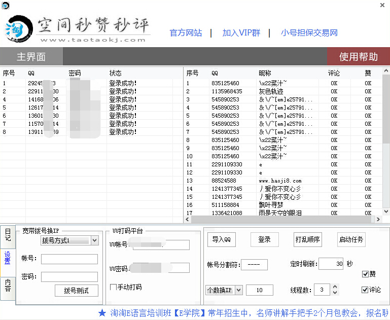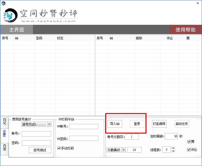1、打开淘淘空间秒赞秒评,登录或导入QQ号