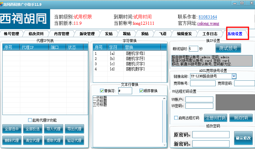 5、宽带拔号换IP,字符,文本替换等功能。
