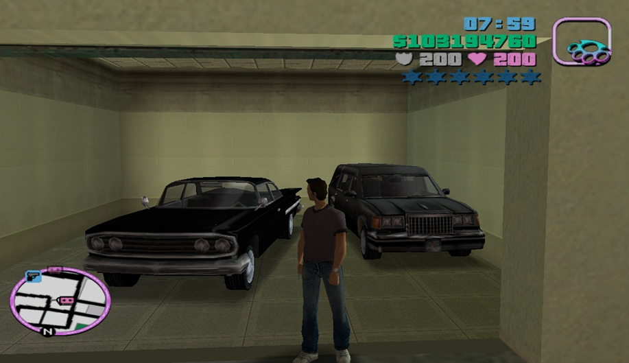 4、中心岛豪宅(就是Starfish Island上原来属于Diaz的大房子)的车库中有灰黑色的Romero's Hearse和纯黑色的Voodoo;