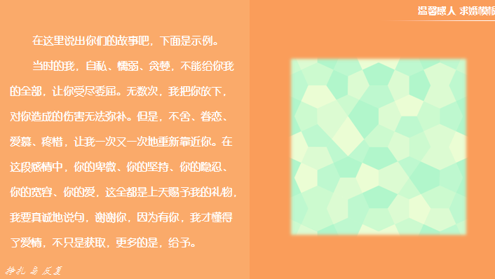 想让自己的求婚仪式显得比较有创意,让你心里的女孩答应求婚,那就赶紧用求婚ppt模板制作一个感动她的礼物吧。下面小编和大家分享的是一个爱情ppt模板,具体为创意浪漫的求婚告白ppt模板,可自由配照片哦,希望大家会喜欢,有需要的朋友可立即下载。