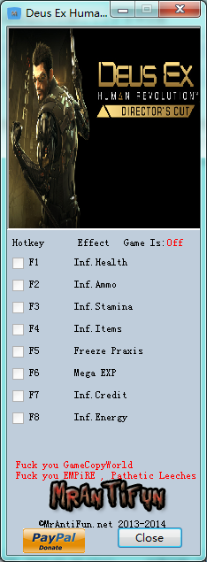 杀出重围3人类革命修改器是同名FPS游戏《杀出重围3:人类革命》的修改器工具。该修改器包含无限生命、无限子弹、无限能源等8项功能,全面且不至于繁杂。欢迎下载使用!