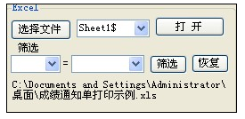 流程:选择Excel文件→选择成绩工作表→打开成绩表(→筛选)。如下图。