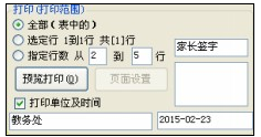 1、选择打印范围:有三种选择,成绩表中 全部、选定的行、指定的行数。