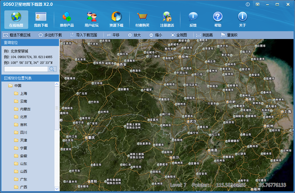 2、安装成功后,打开SOSO卫星地图下载器,中国卫星地图尽收眼底