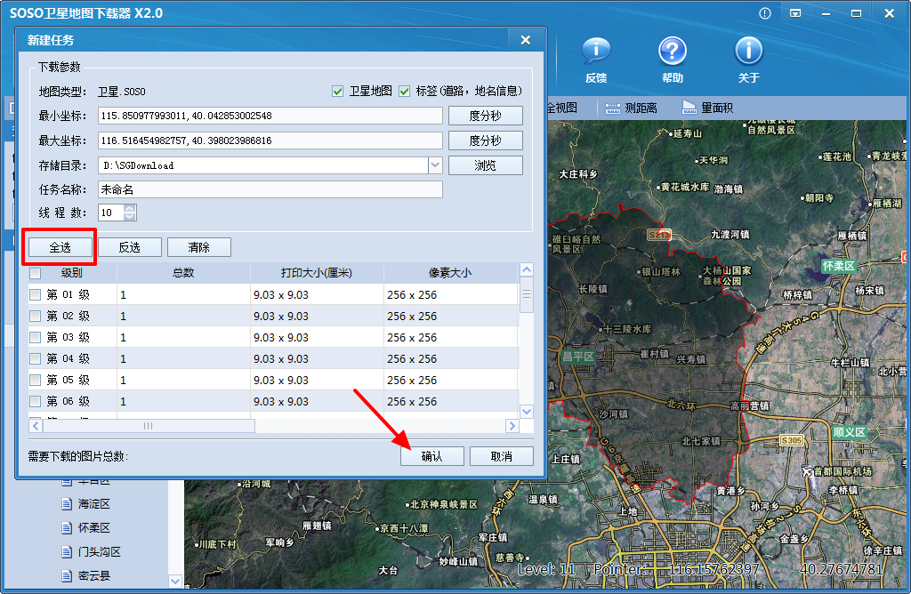 SOSO卫星地图下载器使用方法