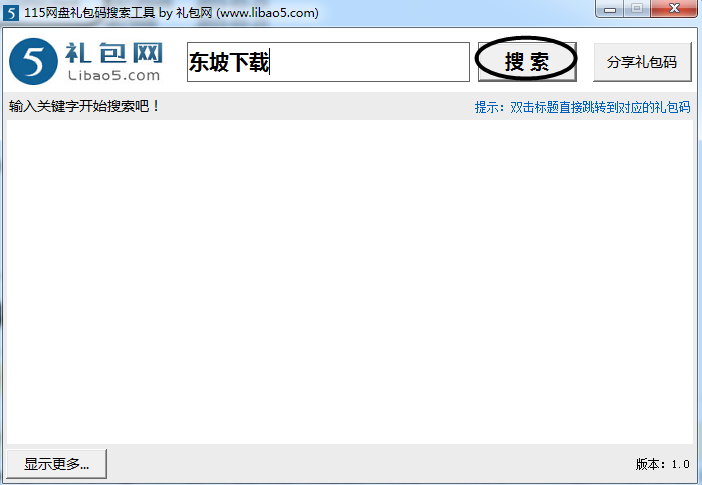 1、打开115网盘礼包码搜索工具,输入想要搜索资源的关键词,并点击搜索