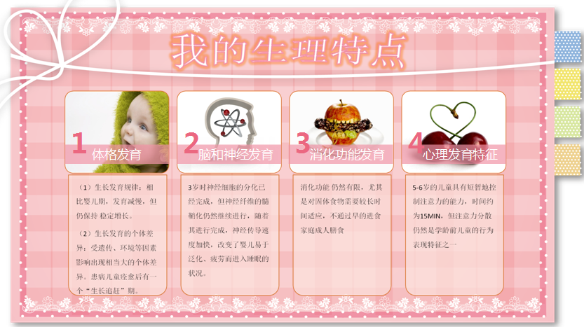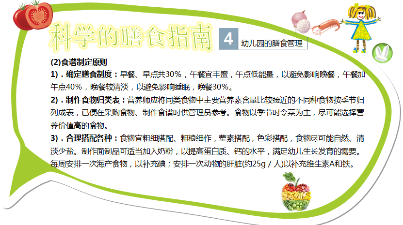 幼儿园儿童正处在生长发育期,这时候的营养是很重要的,下面小编分享的是幼儿园儿童的膳食营养ppt,ppt介绍了儿童的生理特点,营养需要,微软雅黑科学的膳食指南,适合儿童家长、幼儿园老师一起观看。
