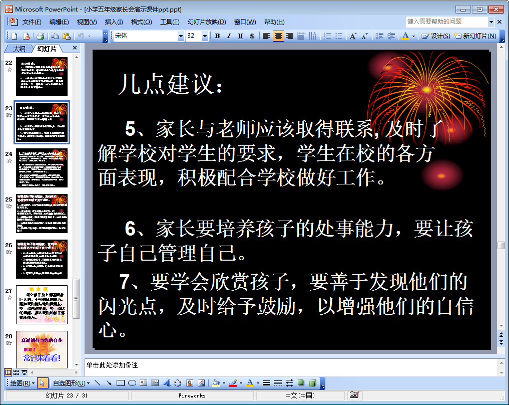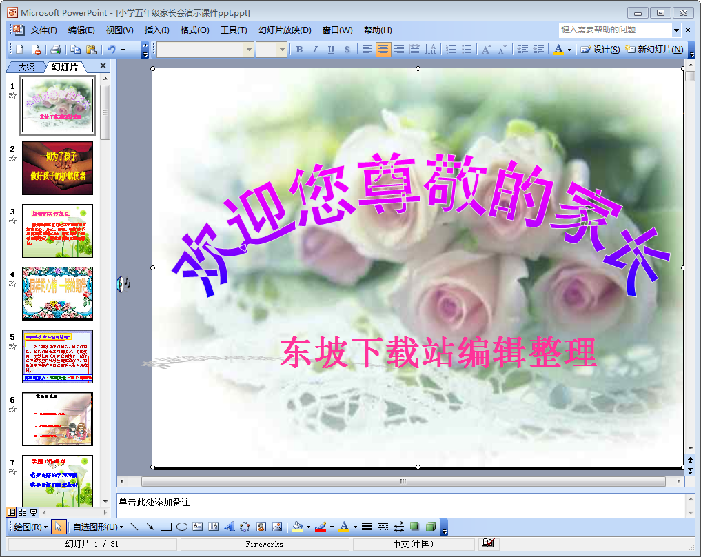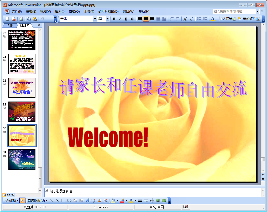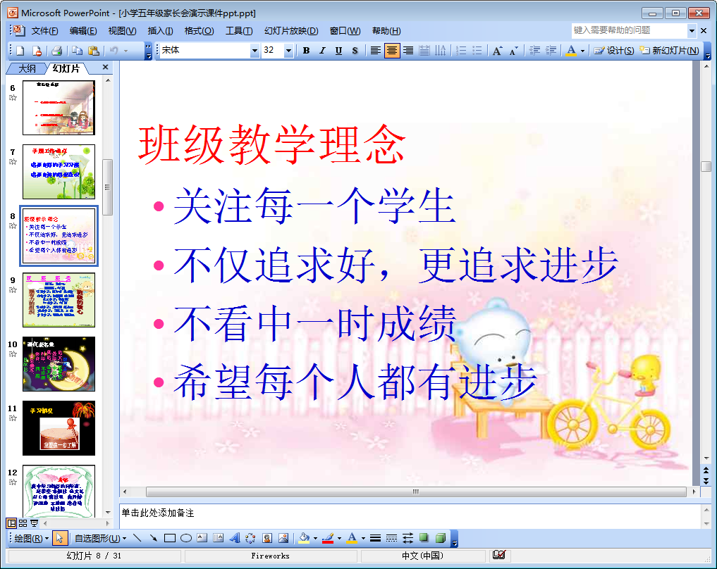 本节内容小编为大家精选带来的是班主任必备ppt课件之小学五年级家长会演示ppt课件,如果你需要一份家长会ppt模板,或是正好需要一份小学五年级家长会演示ppt课件,那么你只需点击本文下方相应的下载地址进行下载即可下载使用该小学五年级家长会演示ppt课件,该家长会ppt课件为免费版,共有31页,内容完整详细,欢迎有需要的朋友进行下载使用!