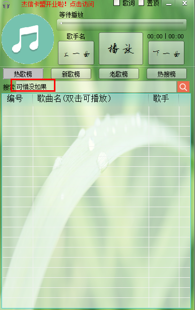 峰哥音乐播放器是由卡盟论坛最新研发的音乐播放软件。他集合了当今最热门的热歌榜、新歌榜等,让大家能够根据自己的需要随意的选择免费歌曲进行试听与下载!