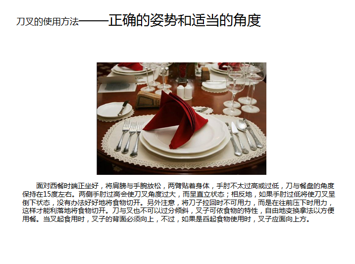 在很多的场合还是需要学习一些西餐礼仪的,下面小编带来的是西餐礼仪培训ppt,ppt详细介绍了西餐礼仪刀叉用法图解,吃牛排注意细节、意大利面细节,如果你正好需要一份西餐的礼仪培训ppt,那就赶紧下载吧。