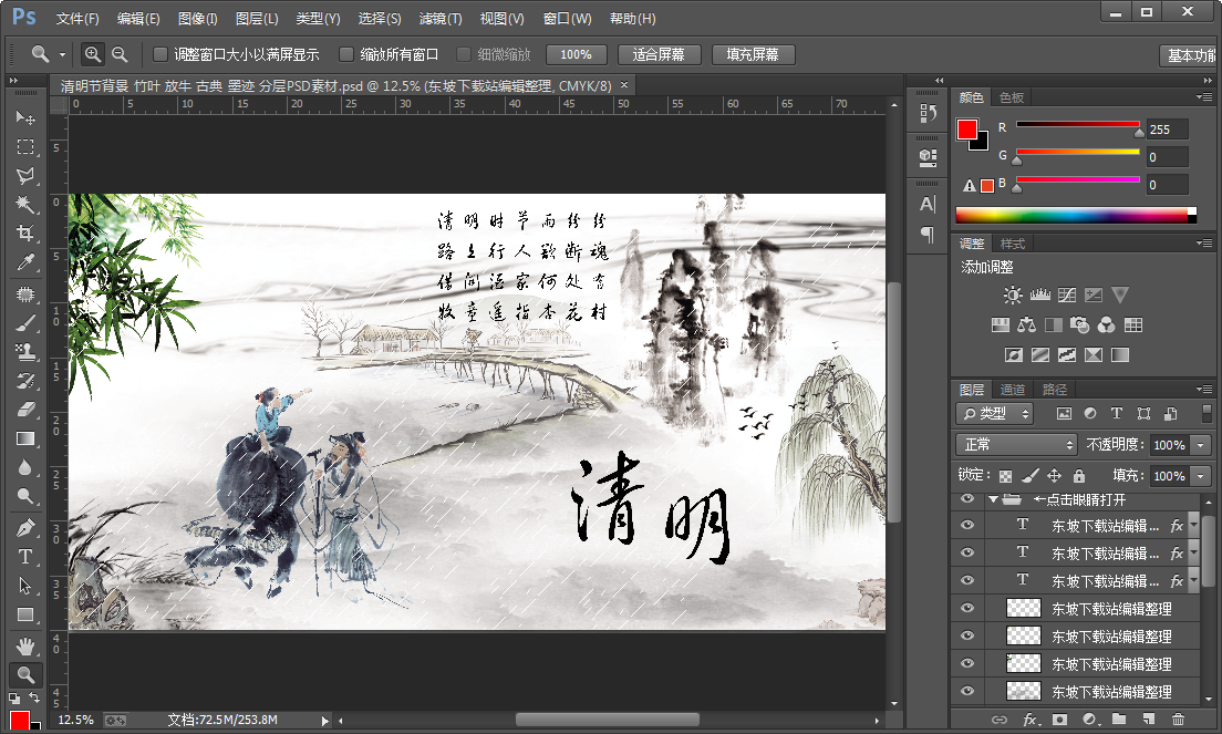 “清明时节雨纷纷,路上行人欲断魂。借问酒家何处有,牧童遥指杏花村。”——其实,与其说这是一份以清明节主题背景的、涵盖了竹叶、牧童放牛、古典墨迹的PSD分层素材,还不如说这是关于杜牧的诗《清明》的配图。总之,不管怎么说,这是一份非常适合作为清明节使用的psd素材,点击本文下方相应的下载地址进行下载之后你就可以对该清明时节雨纷纷配图进行任一图层的选取和编辑了,欢迎下载使用!