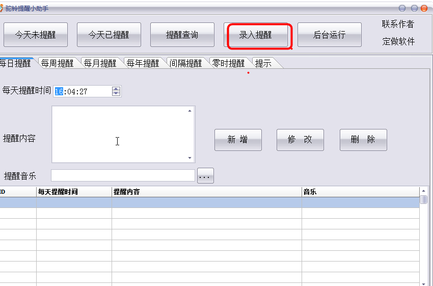 自定义提醒铃声,并且有今日未提醒事件查询,今日已提醒事件查询,以及任意时间段内提醒查询。