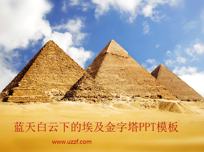 埃及的金字塔古老而又神秘,这里小编分享的是一份埃及金字塔ppt模板,这份及金字塔ppt模板以蓝天白云为背景,适合制作自然风光ppt、金字塔ppt课件等与金字塔有关的幻灯片,需要的朋友赶紧下载吧。