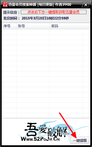 1、打开FF00迅雷会员搜索神器,点击右下角一键获取
