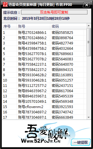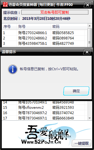 3、双击任意迅雷会员账号,即可复制该账号信息